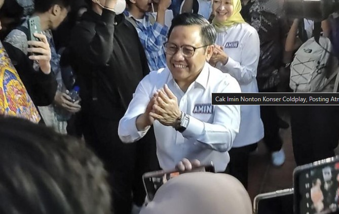1berita.com — Calon wakil presiden (cawapres) Koalisi Perubahan Muhaimin Iskandar atau Cak Imin menonton konser band Coldplay di Stadion Utama Gelora Bung Karno (SUGBK), Rabu (15/11) malam tadi.